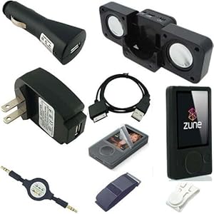 Ultimate Premium Accessory Bundle Combo for Microsoft Zune 80GB / 120GB Series MP3 Player: Black Silicone Skin Case Cover, USB 2in1 Data Sync Cable, USB Car Charger, USB Wall / Travel / AC Adapter Charger, 3.5mm Auxillary Retractable Cable, Belt Clip, Arm
