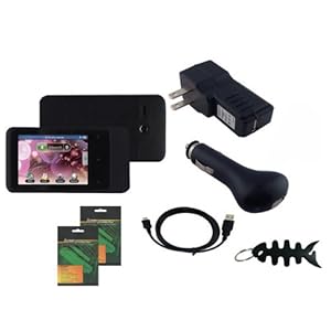 iShoppingdeals - Accessories Bundle Combo for Creative Zen Touch 2 MP3 Player 8GB 16GB, USB Car Charger, USB Home/Wall Charger, USB Data Cable, Black Soft Skin Case Cover, Screen Protector Film, and Smart Headphone Wrap