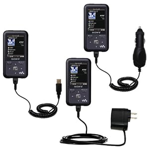 USB cable with Car and Wall Charger Deluxe Kit for the Sony Walkman NW-S716F - uses Gomadic TipExchange Technology